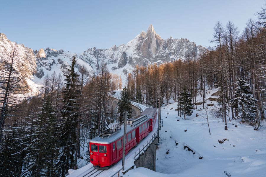 Bienvenue à bord de ce petit train rouge connu du monde entier ! Depuis la gare de Chamonix à 1042 m, notre charmant train à crémaillère vous conduit en toute sécurité jusqu’à la gare du Montenvers, à 1913 m d’altitude.